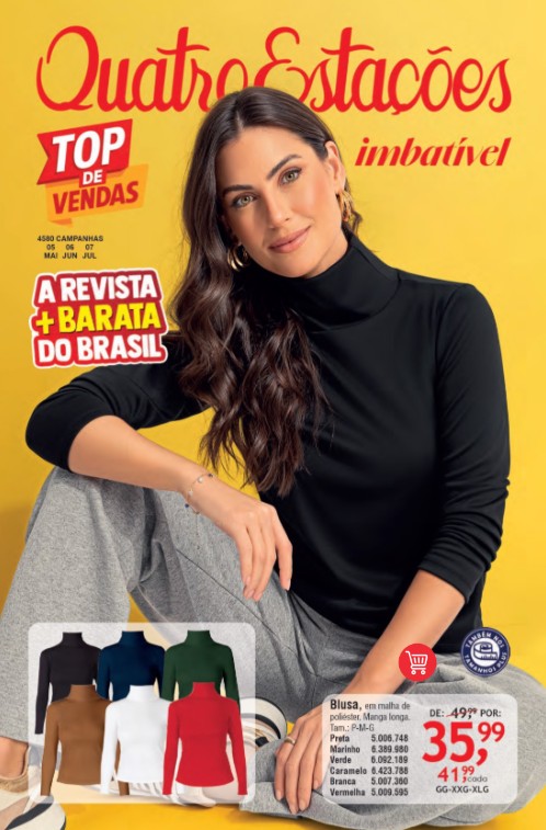 Seja uma Consultora Quatro Estações. Fazer cadastro, fazer pedidos e pedir catálogo é muito fácil. Temos uma grande variedade de produtos para revenda, uma loja completa, linda, roupas da moda e com estilo. Nossas Revistas para revender: Quatro Estações Imbatível, Fashion e Winner. Você vai revender produtos exclusivos e com qualidade. Venda on line e venda mais através da revista virtual. Confira o Aplicativo Quatro Estações, uma grande Facilidade para a Consultora! Nossa linha de produtos é enorme: Lingerie, cosméticos, bolsas, utilidades domésticas, cama mesa e banho, vestidos, calçados, roupas femininas, roupa intima, moda infantil, moda bebe, semijóias, bijuterias, maquiagens, acessórios, moda masculina, eletrônicos , cd´s, dvd´s, livros e muito mais.